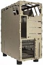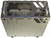 Differences between this case and most others kick in, with the unusual cutouts on the case. The top panel is perforated to hold a 140 mm fan, and a couple of 120 mm bottom intakes, which pretty much wrap up the fan provision loadout. It doesn't include any fans, and doesn't need them to begin with. A huge monolithic aluminum heatsink hovers over the CPU socket area, which connects to the CPU over a copper base and heat-pipes. This heatsink can passively cool CPUs with TDP of up to 95W. The case measures 180 x 420 x 420 mm, and although the company didn't mention dry weight, we expect it to be on the higher side. Strap it with a passively cooled PSU like the SilverStone NightJar, a passive-cooled graphics card like the PowerColor HD 7850 SCS3, and you're good to go [silent]. Having a unique/niche product has one distinct advantage. You get to price it high. This case is yours for 333 EUR.