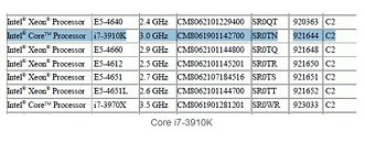 The Core i7-3910K is based on the same Sandy Bridge-E C2-stepping silicon as the i7-3970X, and is said to feature 3.00 GHz clock speed. There's no clarity on exactly how many cores it features, but given that it's named in the i7-3900 series, and not the i7-3800 series, we're leaning toward it being a six-core part. A bid by Intel to clear out "imperfect" Sandy Bridge-E silicon by giving it a relatively low clock speed? We doubt that, it features the "K" brand extension, which denotes unlocked base-clock multiplier. Intel's cheapest LGA2011 six-core part is the i7-3930K, which goes for roughly US $550. If Intel prices this chip just right, by that we mean $400-ish, it could be a tease for all those shelling out $350 for a Core i7-4770K. Low clock speed, but unlocked. Two extra cores, quad-channel memory, and a bigger PCIe budget, albeit an older micro-architecture. Decisions, decisions.