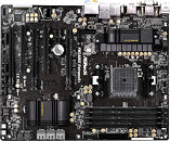 Storage connectivity on the FM2A88X-Extreme6+ includes seven SATA 6 Gb/s ports, and one eSATA 6 Gb/s. Display connectivity includes dual-link DVI, DisplayPort 1.2, and possibly HDMI 2.0. 8-channel HD audio with optical SPDIF output, gigabit Ethernet, and six USB 3.0 ports. Moving on, the FM2A88M-Extreme4+ features a simpler 6-phase VRM for the APU socket, which is wired to four DDR3 DIMM slots, and a single PCI-Express 3.0 x16. The other long slot is electrical gen 2.0 x4. One each of PCI-Express 2.0 x1 and legacy PCI make for the rest of its expansion. Display connectivity includes dual-link DVI, D-Sub, and HDMI (2.0?). Four USB 3.0 ports, 8-channel HD audio, and gigabit Ethernet make for the rest of it.