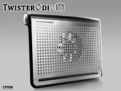 ENERMAX, the cooling solution expert, maker of outstanding cooling fans and chassis, releases its newest cooling pad, TWISTERODIO 16 CP008. This new model offers a stylish, brushed aluminum cooling platform along with DreamBass chip powered speakers. The TWISTERODIO 16, just like the other ENERMAX cooling pads, offers innovative and fun features to keep your notebook running cool and sounding great.