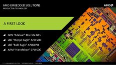 AMD (NYSE: AMD) today disclosed its roadmap for the fast-growing embedded computing market, as it becomes the first company to offer both ARM and x86 processor solutions for low-power and high-performance embedded compute designs. The new lineup includes two best-in-class x86 accelerated processing units (APUs) and central processing units (CPUs), a first look at a high-performance ARM system-on-chip (SoC) and a new family of discrete AMD Embedded Radeon graphics processing units (GPUs) expected to launch in 2014. These additions provide the embedded industry's engineering community with more choices to match their exact design needs, and are designed to offer improvements in performance-per-watt and performance-per-dollar. Together with the recent launch of the award-winning AMD Embedded G-Series SoC family that set a superior bar for performance-per-watt low-power multicore APUs, these latest additions to the embedded product roadmap further signify a strategic push by AMD to focus on the high-growth embedded market.
