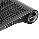 TWISTERODIO 16 cooling pad is a high quality notebook cooler with classical appearance and a USB extension. It comes with a manual fan speed control for the best balance between silence and performance. TWISTERODIO 16 cooling pad is specially designed to solve two common problems with most laptops: overheat and poor sound quality. This unique cooling pad not only provides a sleek exterior with well-designed cooling fan, but an audio plug-in for the use of the attached speakers. The two integrated speakers are powered by the DreamBass sound chip for full-surround sound experience with exceptional bass and crystal-clear vocal performances.