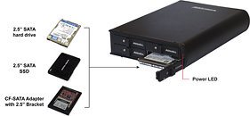 The new product comes in a choice of models equipped with different interfaces for fast external storage performance via an eSATA, SuperSpeed USB 3.0, or a mini SAS connection. The Sapphire Disk Array allows users to hot swap up to four SATA 2.5-inch hard drives, SDDs, just like using a tape cassette. The four drives can be set up as four individual drives or a large volume and high performance RAID group with redundancy for reliability. On the model that comes with USB 3.0 connections, the four drives can also be instantly turned into a network attached storage (NAS) solution for sharing data over the network by attaching to the optional Addonics NAS 4.0 adapter.