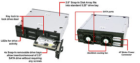 Addonics Technologies today unveiled the Sapphire Snap-In Disk Array, a high performance external storage device family that is easily expandable with RAID capability. The Sapphire Disk Array is a great portable storage solution for a wide range of applications that demand high performance and large amount of storage in the field.