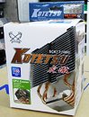 Measuring 130 x 58 x 160 mm (WxDxH), the heatsink weighs about 480 g. It's ventilated by a Falcon 120 (120 mm) PWM-controlled fan, which spins between 400 and 1,400 RPM, pushing up to 79 CFM of air, with a maximum noise output of 28 dBA. Kotetsu supports all modern CPU socket types, including LGA2011, LGA115x, LGA775, AM3+/AM3, and FM2+/FM2/FM1. It's priced at 3,480 JPY (US $35).
