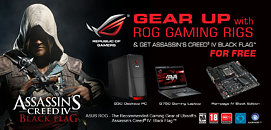 ASUS Republic of Gamers (ROG) today announced that in partnership with Ubisoft it will bundle Assassin's Creed IV: Black Flag with the Rampage IV Black Edition motherboard and selected gaming PCs including Tytan G30 and the G750 gaming laptop.