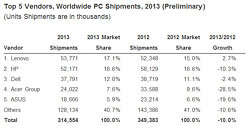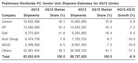 (PR) Gartner Says PC Shipments Down 6.9 Percent in Q4 2013