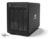 The ThunderBay IV, available in capacities up to 16 TB of total storage, adds tremendous storage capacity and throughput to any Mac or PC with a Thunderbolt port. Applications such as A/V post-production, photography, music, graphics, data management, and even Time Machine backups are enhanced with access to data at sustained data rates of up to 887 MB/s read, 884 MB/s write.