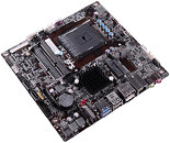 ECS unveiled the A78F2-TI, an interesting thin mini-ITX motherboard. Don't be fooled into thinking it's a socket AM1 board. It's socket FM2+, with the cooler mount hole design of Intel LGA115x. That's right, this is arguably the first AMD platform board with square, spaced out cooler mount holes. Don't get your hopes up just yet. Between an FM2 socket, and the APU's chunky IHS, there's more thickness than an Intel socket with a CPU installed. So it may not support all heatsinks. The board draws power from an external 2-pin power brick. It uses a 3+1 phase VRM to condition power for the FM2+ socket.