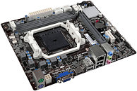 ECS unveiled its first socket FM2+ motherboard based on AMD's new A58 FCH entry-level chipset, the A58F2P-M4. This narrow micro-ATX motherboard draws power from a combination of 24-pin ATX and 4-pin CPU connectors, and uses a 3+1 phase VRM to condition power for the APU, which is wired to two DDR3 DIMM slots, and a PCI-Express 3.0 x16 slot. The only other expansion slot is a PCIe 3.0 x1. Connectivity is fairly basic, with four SATA 3 Gb/s ports, D-Sub and HDMI display outputs, 6-channel HD audio, and gigabit Ethernet. Expect this to go under $50.