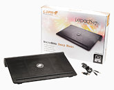 The new LEPAD S17 notebook cooler accomplishes two tasks at once: Its 14 cm fan supports the cooling system of overloaded and overheated mobile computers, and the two integrated speakers improve the sound output quality. For best possible air circulation and an effective elimination of hot spots, LEPA applies a wide steel mesh surface. The cooling performance can be adjusted according to the particular system requirements thanks to a seamless fan speed control. It ranges from 800 to 1,300 RPM.