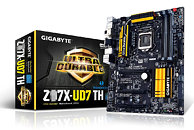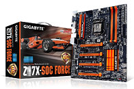 All three boards have an Ultra Durable design, they are SLI and CrossFire capable (the UD5 and UD7 provide three PCI-Express x16 slots while the SOC model offers four such slots), and include four DDR3 memory slots, one SATA Express connector, two (Z97X-SOC) or four (Z97X-UD5H, Z97X-UD7) SATA 6.0 Gbps ports, 7.1 channel audio and Gigabit Ethernet (the UD7 TH and SOC Force pack a Killer E2200 NIC).