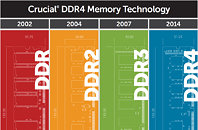 Designed to enable next generation enterprise environments, Crucial DDR4 server memory delivers data rates that start at 2133 MT/s (up to twice as fast as DDR3 when it was introduced) and is expected to get even faster as the technology matures. What's more, when used with Intel Xeon processor E5-2600 v3 product family-based systems, Crucial DDR4 server memory doubles memory bandwidth from 8.5 GB/s to 17 GB/s. Additionally, Crucial DDR4 memory uses up to 20 percent less voltage than DDR3 technology, operating at 1.2V compared to 1.5V for standard DDR3 memory, and delivers up to a 40 percent reduction in power usage.
