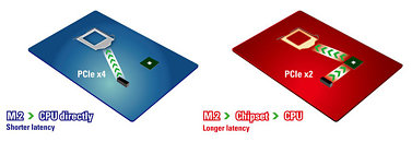 Ultra M.2 is one of ASRock's creative innovations. Compared to normal M.2 with PCIe Gen2 x2 bandwidth, ASRock is the first one in the world to double the M.2 bandwidth to PCIe Gen3 x4! Furthermore, the layout of Ultra M.2 is also specially designed. On a regular motherboard design, the signal route starts from the M.2 device, goes through the onboard chipset, and finally reaches CPU. In contrast, by connecting the M.2 interface to CPU directly, ASRock Ultra M.2 has lower latency and pushes the I/O speed to a new level!