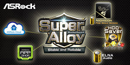 With ASRock Super Alloy Technology, the 9 Series products are equipped with numerous high class components to ensure their stabilities and reliabilities. As if that wasn't enough, there are more unique features applied on these new products, including Purity Sound 2 with Nichicon Fine Gold Series Audio Caps, ELNA Audio Caps on mainstream motherboards, ASRock HDD Saver Technology, APP Shop, and ASRock Cloud.