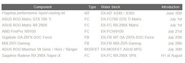 EK Water Blocks, Ljubljana based premium water cooling gear manufacturer, is working on a plethora of new water blocks, namely for the following graphics cards and motherboards: