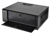 SilverStone Technology is just about ready to ship a new Grandia Series PC chassis, the ATX and micro ATX-supporting Grandia GD10 (SST-GD10B). Pictured below, SilverStone's case measures 442 (W) mm x 171 (H) mm x 362 (D) mm, it weighs 4.8 kg and has a steel body, an aluminum front door, two front-facing USB 3.0 ports, one 2.5-inch and two 3.5-inch internal drive bays, one 5.25-inch slot, and three 120 mm fans (two on the right panel and one on the left) working at 900 RPM.