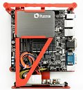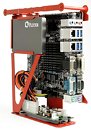 Here are some of the first pictures of Gigabyte's Essence mini-ITX case. Designed for entry-level mini-ITX desktops that can be fan-less, the Essence measures 300 mm x 234 mm x 74 mm; and is made of SECC steel and plastic. Its design involves a main cubicle inclined onto a stand, which encloses its power supply. A 120W external power brick supplies 12V, which it then gives out as various ATX standard power connectors. The case can hold a full-height mini-ITX motherboard, and a 2.5-inch drive. The case is beginning to sell in Japan, priced at the equivalent of $130. The source doesn't expect it to be priced above $100 in western markets.